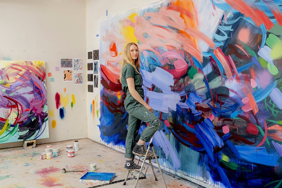 Dynamic large-scale paintings by the San Francisco-based artist delve into introspective self-portraiture, in which tangible embodiments of her subconscious unravel into dynamic forms, colors and gestures.