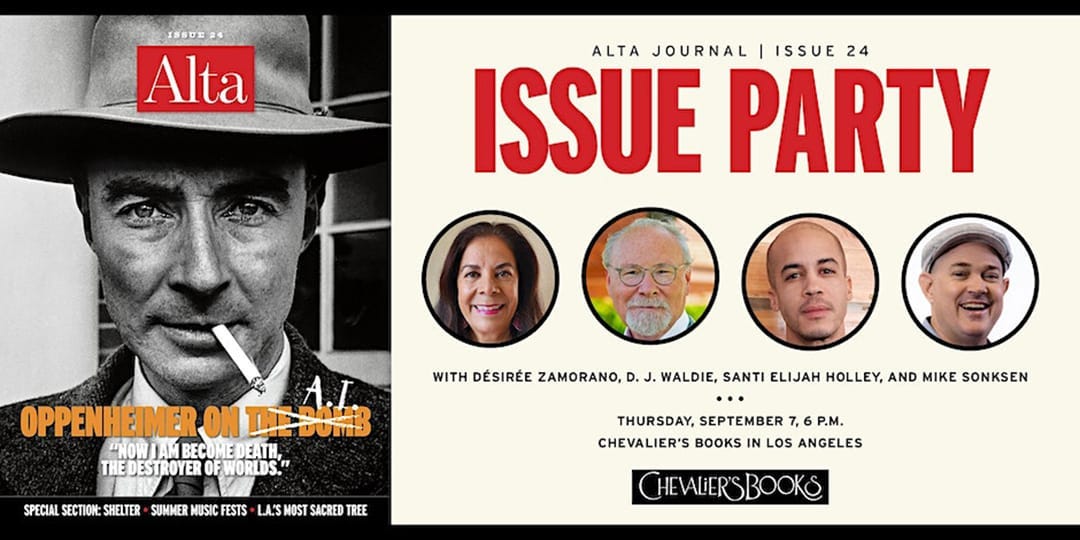 Alta Journal celebrates the launch of its summer issue with readings by local contributors Désirée Zamorano, D.J. Waldie, Santi Elijah Holley and Mike Sonsken. Free with RSVP.