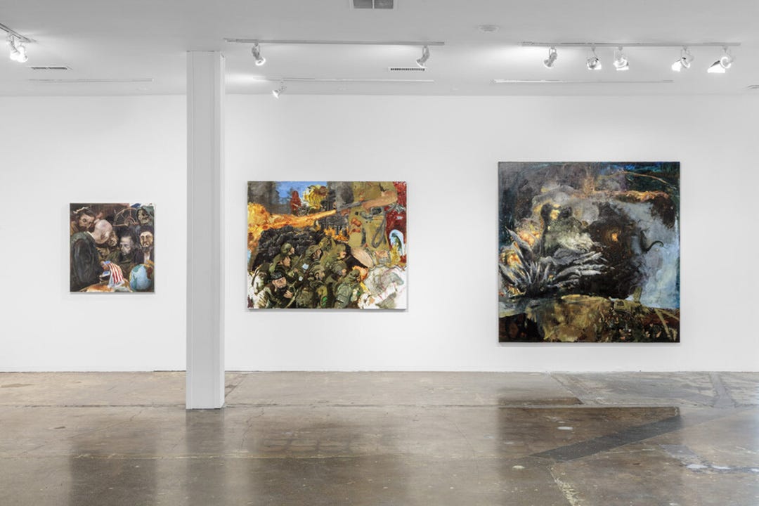 Ken Taylor Reynaga’s Beneath the Avocado Tree at Simchowitz Hill House renders the landscape as something physically carried — saturated fields where workers and caretakers merge with terrain until figure and ground dissolve. At Regen Projects, planchette marks the first time Rachel Harrison, Liz Larner, and Rebecca Morris have exhibited together — an exhibition full of absent forms, buried content, and ghostly traces where drop cloths summon past canvases and porcelain retains impressions of objects now gone. And at Jeffrey Deitch, Celeste Dupuy-Spencer’s Burning in the Eyes of the Maker turns fully toward painting as a site of meaning — where myth, religion, and the sacred arrive not as symbols but as figures that interrupt, demand translation, and refuse to be aestheticized.