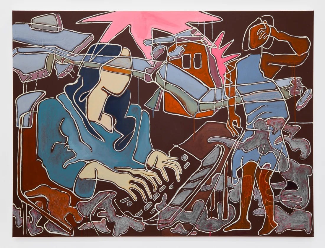 This week stretches from textile armor to medieval combat, wax rubbings to herbal prescriptions cast in resin — ten exhibitions that test the boundaries between what is seen and what can be trusted. Nazarian/Curcio opens Siluetas Simultáneas, where Maria A. Guzmán Capron’s abstracted textile figures wrap around and shield more legible forms, creating conditions in which concealment enables revelation. At Moskowitz Bayse, Doubting Thomas choreographs skepticism across painting, sculpture, and illusion — with Aaron Elvis Jupin, Mike Kelley, and Tony Matelli each staging a different kind of slippage between recognition and certainty.