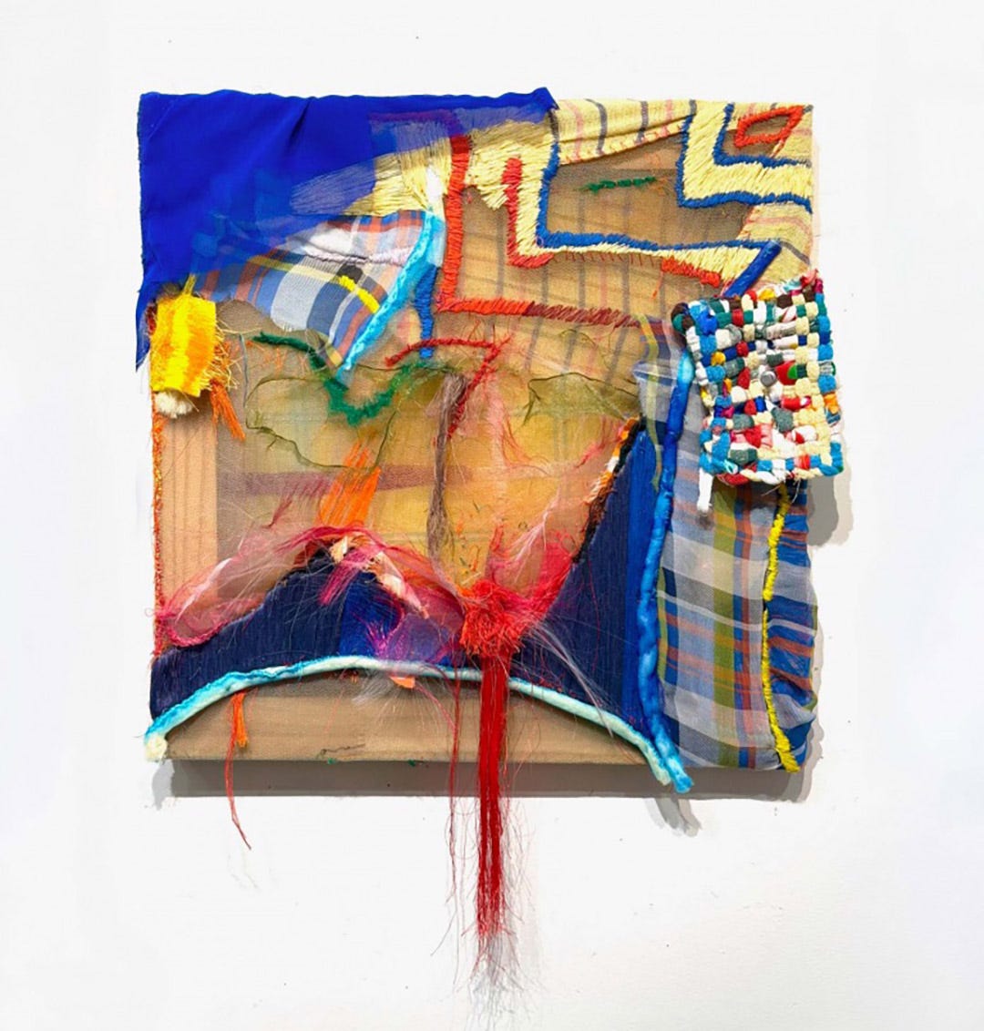 Working intuitively from the mundane heap of life, Julia Couzens fashions abstract works from fabric remnants, paper, wood scrap, thread, and discarded notions — stitching, bundling, cutting, and layering with tulle as a foundational material whose transparency and nuanced palette deliberately undermine Date Night notions of femininity while beckoning states of charged ambiguity.