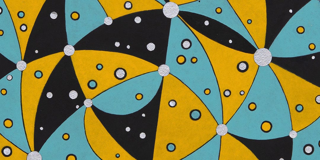 John Willenbecher’s first Los Angeles solo exhibition since 1972 presents recent paintings and works on paper featuring interwoven geometric figures—the equilateral triangle, circle, square, and cone—shapes that have anchored his practice for over 60 years. Made of acrylic paint and metallic leaf on fiberboard, the works may be positioned in any direction, with the shelf on which they rest becoming part of the piece.