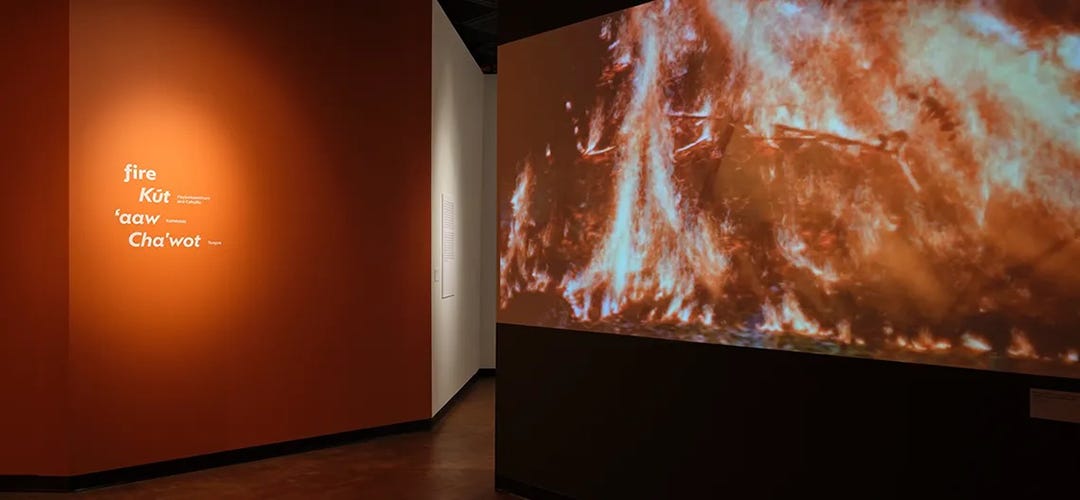 Prior to colonization, Native communities throughout Southern California used controlled fire practices to ensure the vitality of local ecosystems. Fire Kinship counters attitudes of fear around fire, arguing for a return to Indigenous practices through baskets, ollas, and canoes made possible by the relationship between people, place, and fire—alongside commissioned works by contemporary artists including Gerald Clarke Jr., Weshoyot Alvitre, and Leah Mata Fragua.