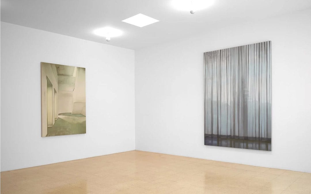 In Utility, Paul Winstanley returns to familiar themes—veiled window views onto nature, empty lobbies, graffitied walkways—creating vacant interiors suspended in time that calmly yet insistently question how images, spaces, and meaning are produced across four decades of painting.